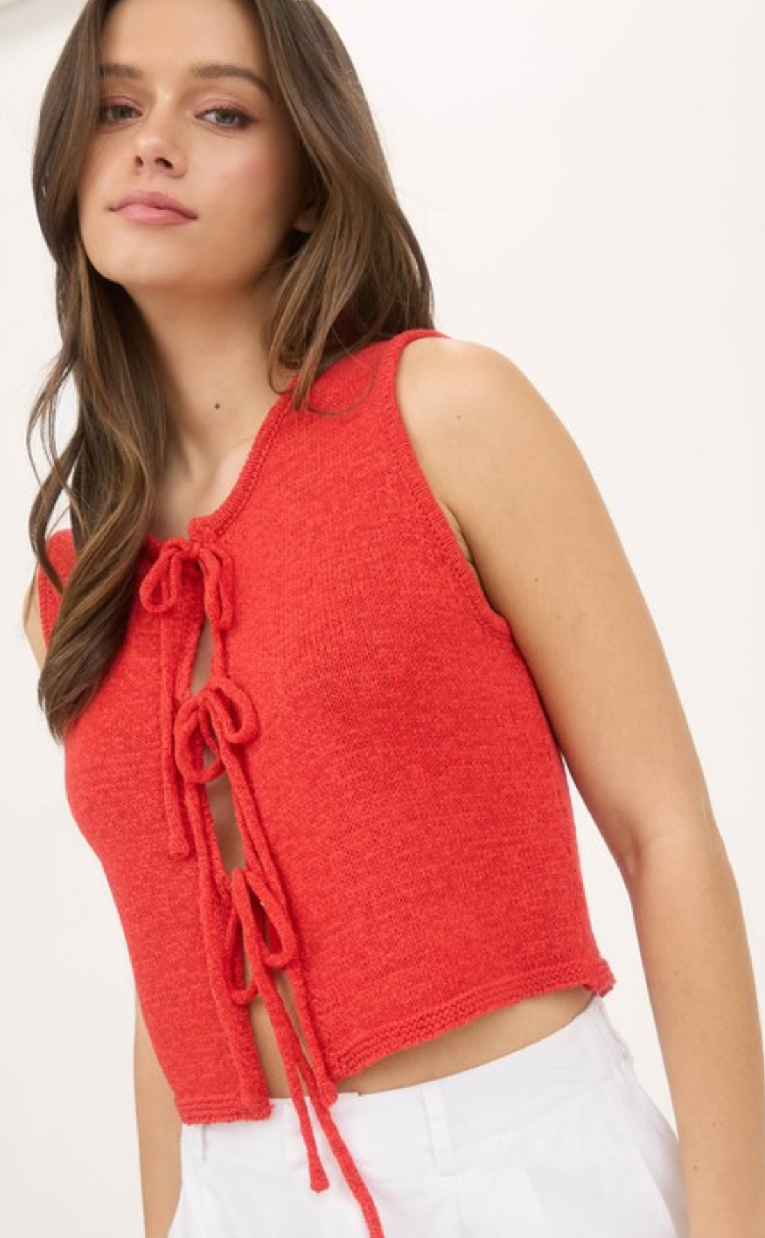 Front tie sweater vest.