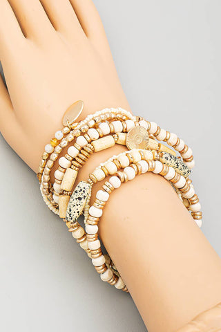 Set of 4 Maroon and White Glass Bead and Gold Stretch Bracelets, Great for Gameday!