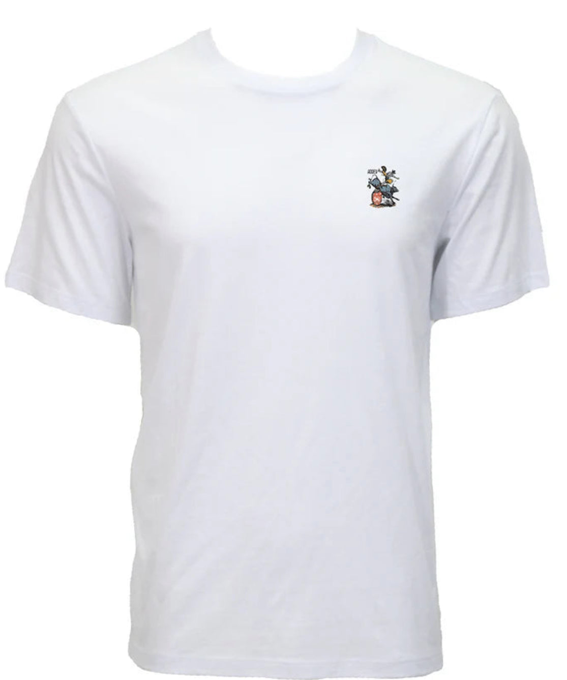 Prison Rodeo, Men’s White Crew Neck Cotton / Poly Short Sleeve T-Shirt with Multi Color Rodeo Poster on Back