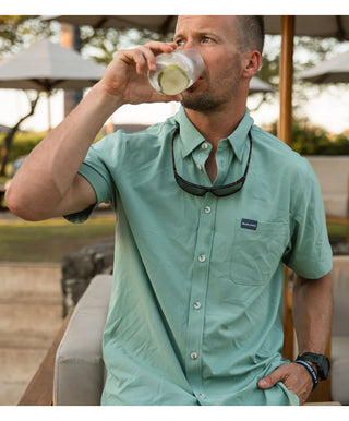 Burlebo Mens Perfomance Button Up - Ocean Swell
