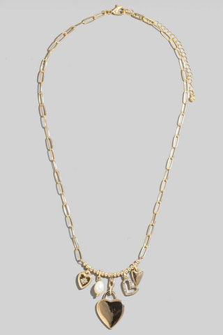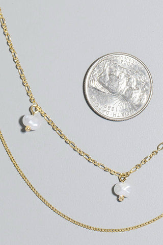 Pearl Pendants Layered Dainty Chains Necklace: Gold