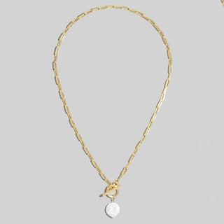 Toggle Chain Link Disc Pearl Charm Necklace: G