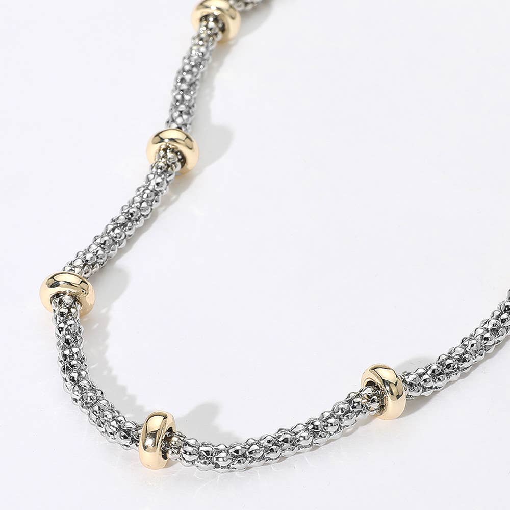 14K Gold Plated Two Tone Mesh Chain Necklace