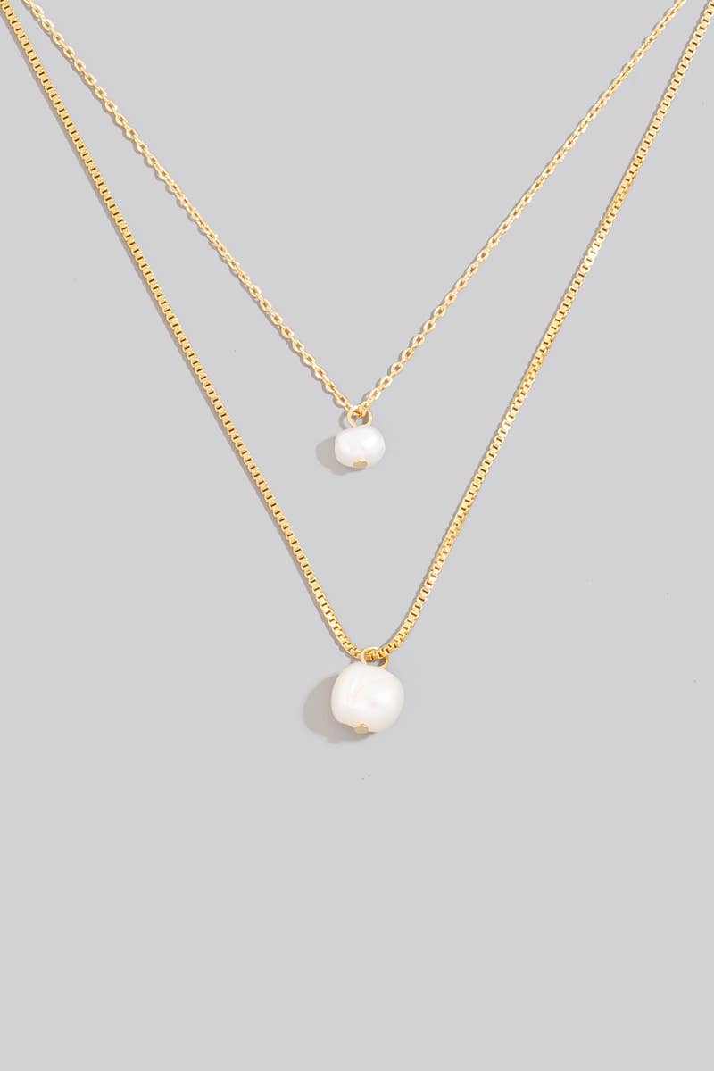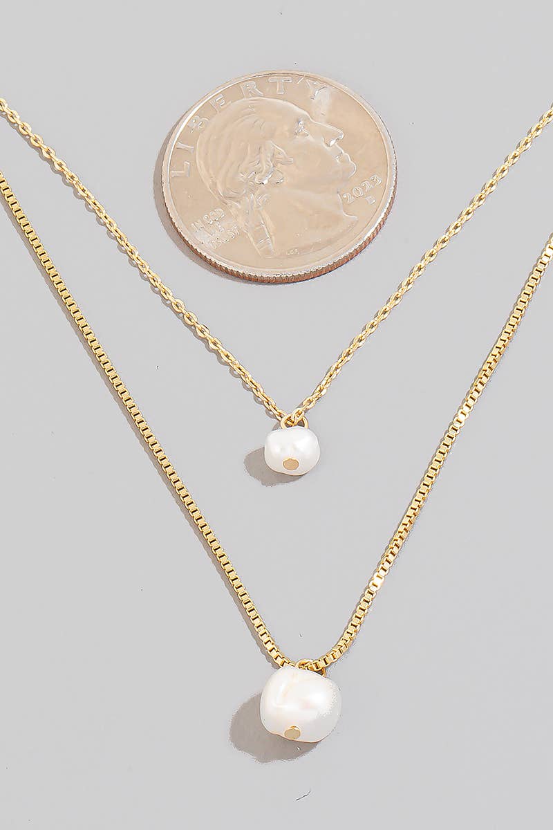 Pearl Pendants Layered Dainty Chains Necklace: Gold