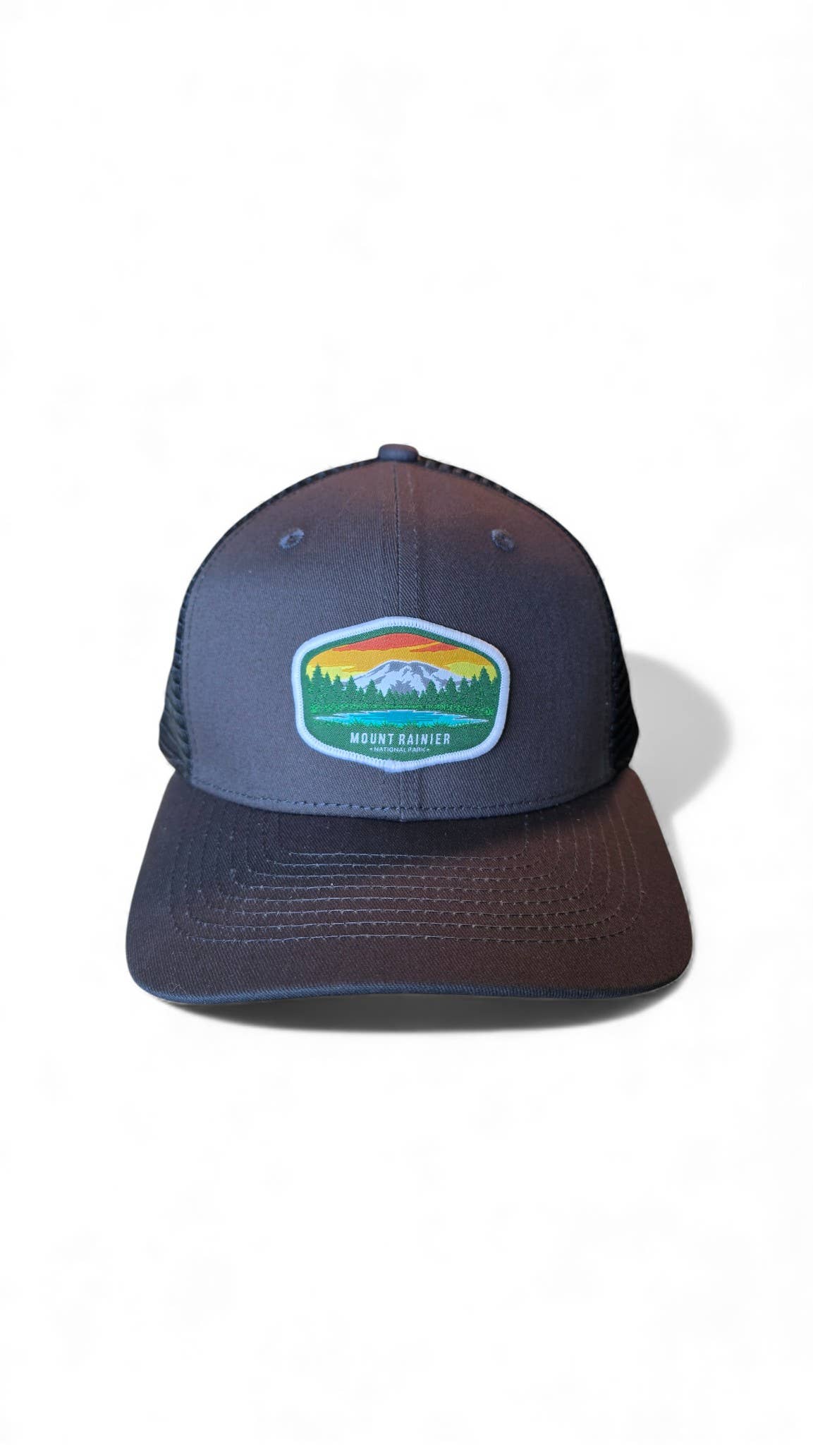 Inspired by the iconic beauty of Mount Rainier, this snapback trucker hat brings your favorite national park to your everyday gear. Featuring a vibrant embroidered patch and breathable mesh back, it’s perfect for trail days, road trips, and representing the great outdoors in style.