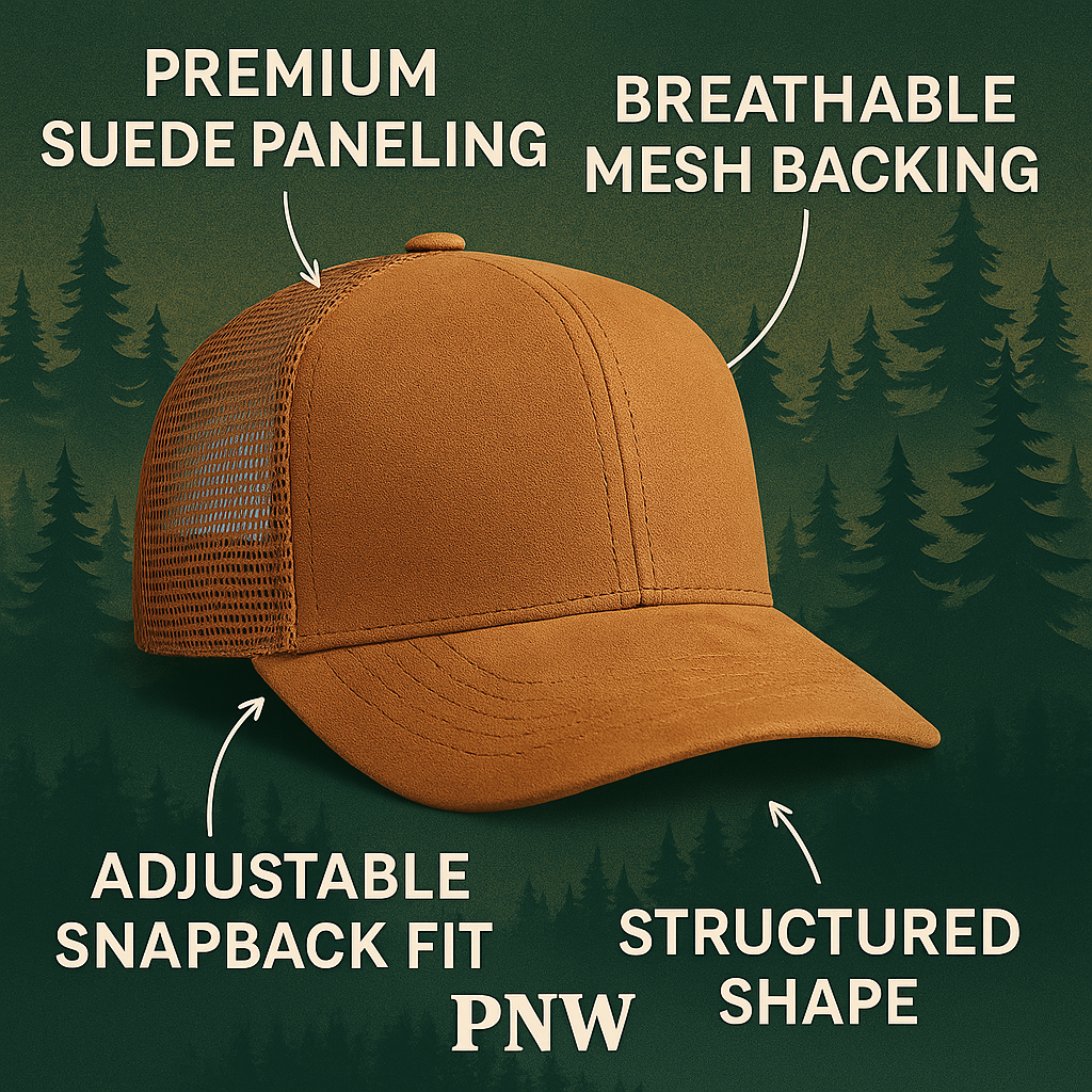 • Faux suede front + mesh back for breathability