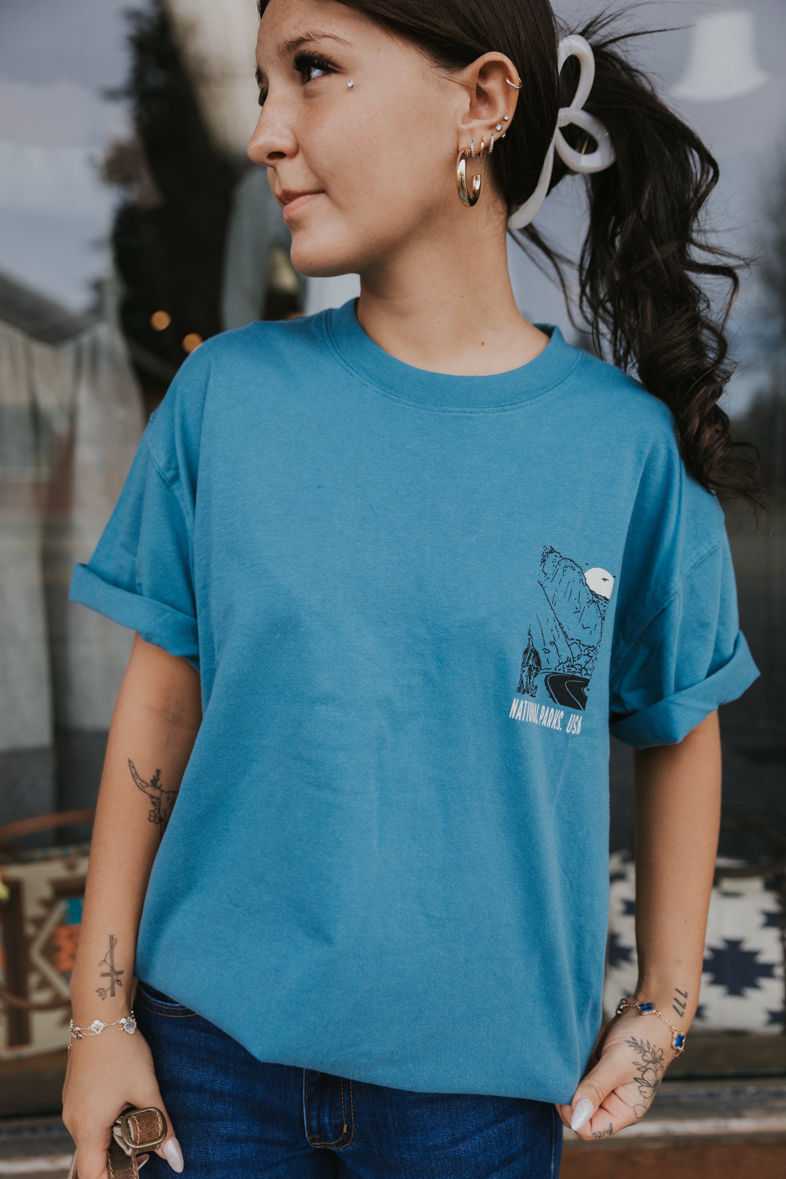Fill In Your Park Boxy Tee- Dusty Blue