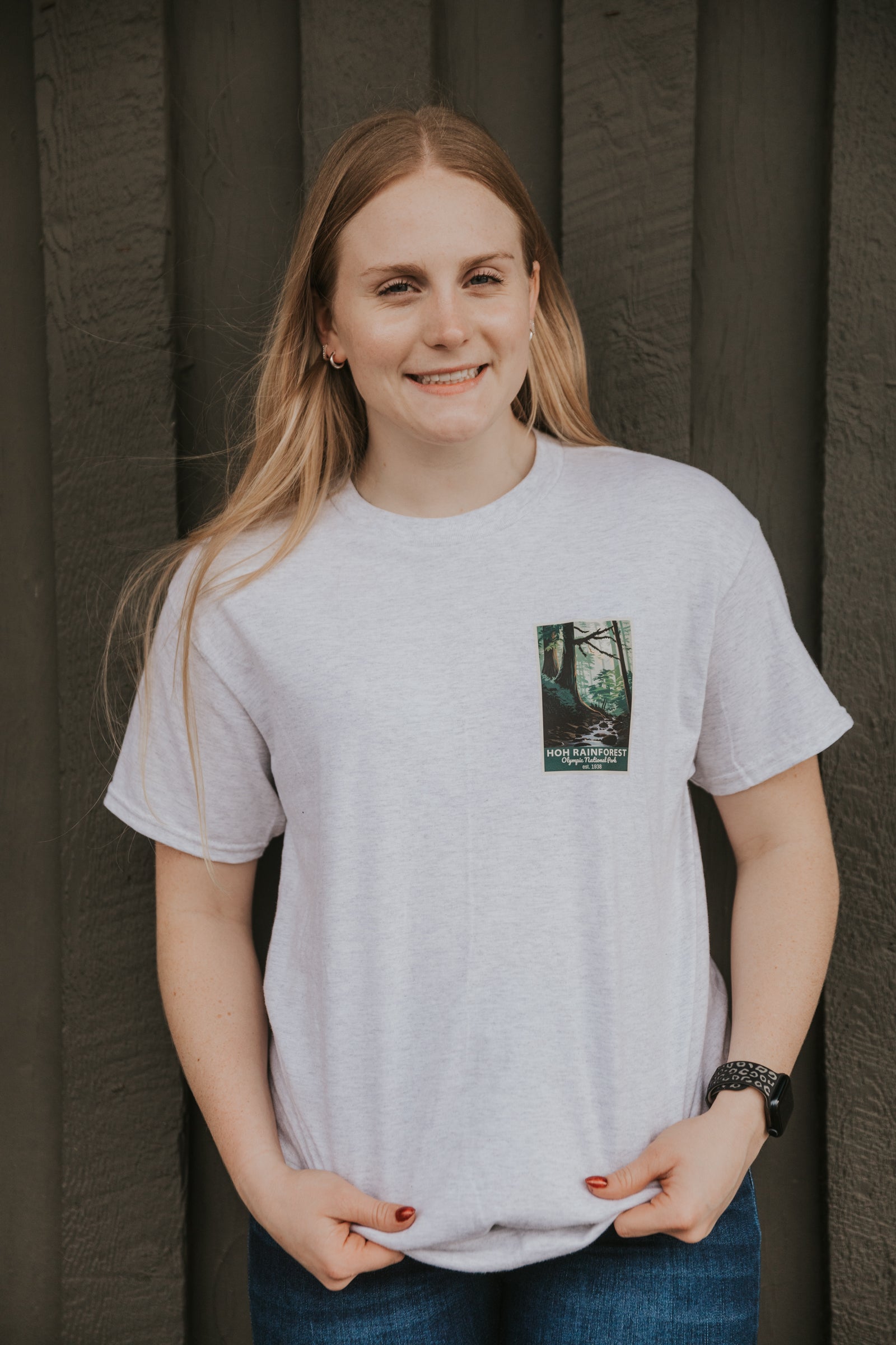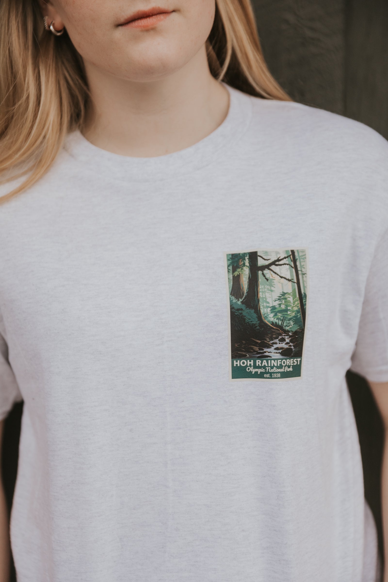 Custom designed + made by Fog + Fern in Forks, WA! Unique Marymere Falls ONP design is made on Hanes P160 unisex crews and Gildan 5000 tees that are true to size.