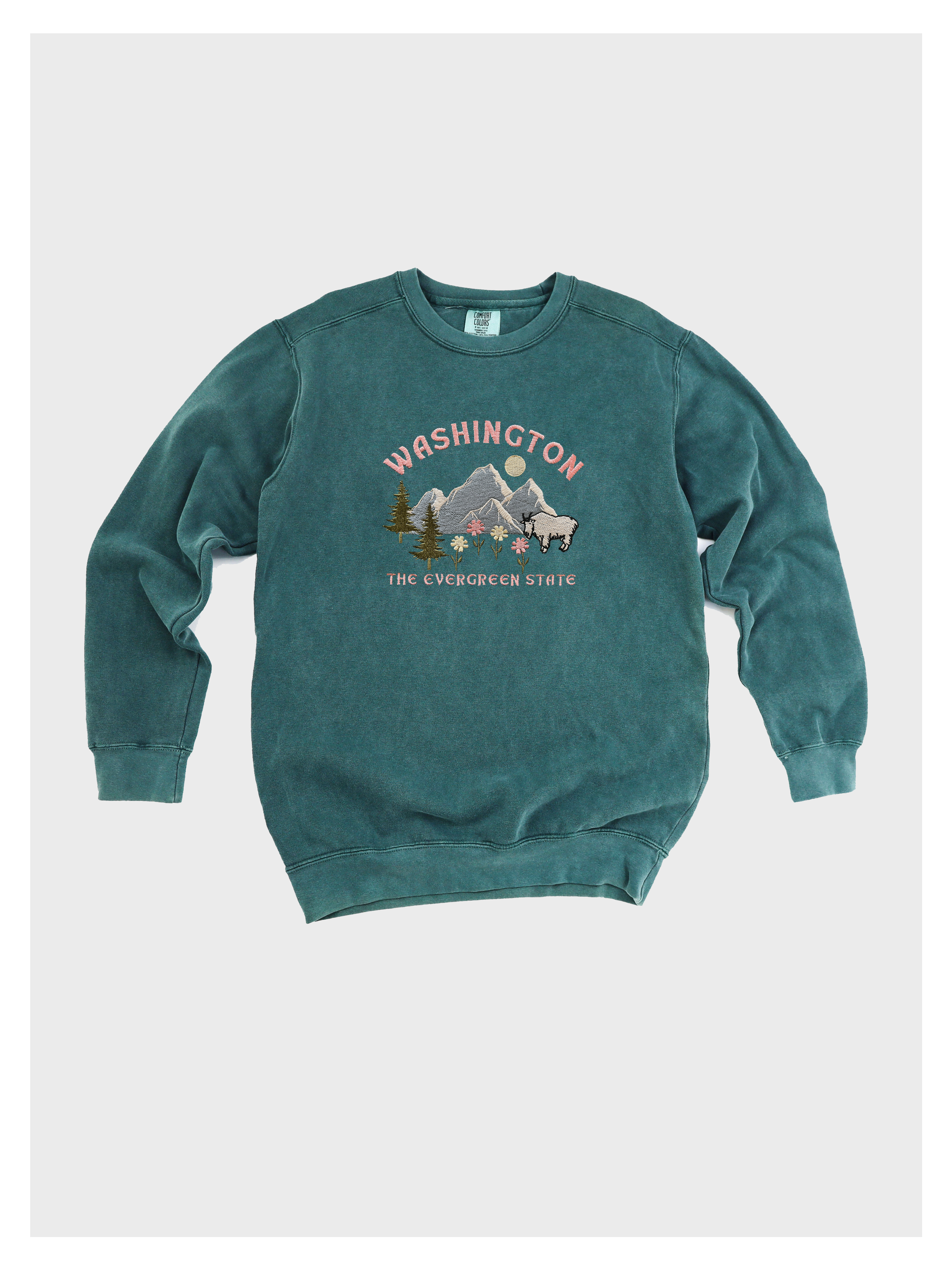 Embroidered Washington State Mount Rainier National Park Embroidered Sweatshirt -Embroidered on Comfort Colors Brand Sweatshirt. -See product pictures for shirt sizing chart. These sweatshirts run true to size, so if you like an oversized look, we recommend sizing up 1 size! -All sweatshirt designs are handmade on an embroidery machine so there may be slight differences. We only supply pieces that meet our highest quality standards. -To maintain the quality of your sweatshirt and the embroidery design for years to come, make sure to wash with care. We recommend turning the item inside out and using a cold wash and delicate cycle. We highly recommend air drying when possible as well.
