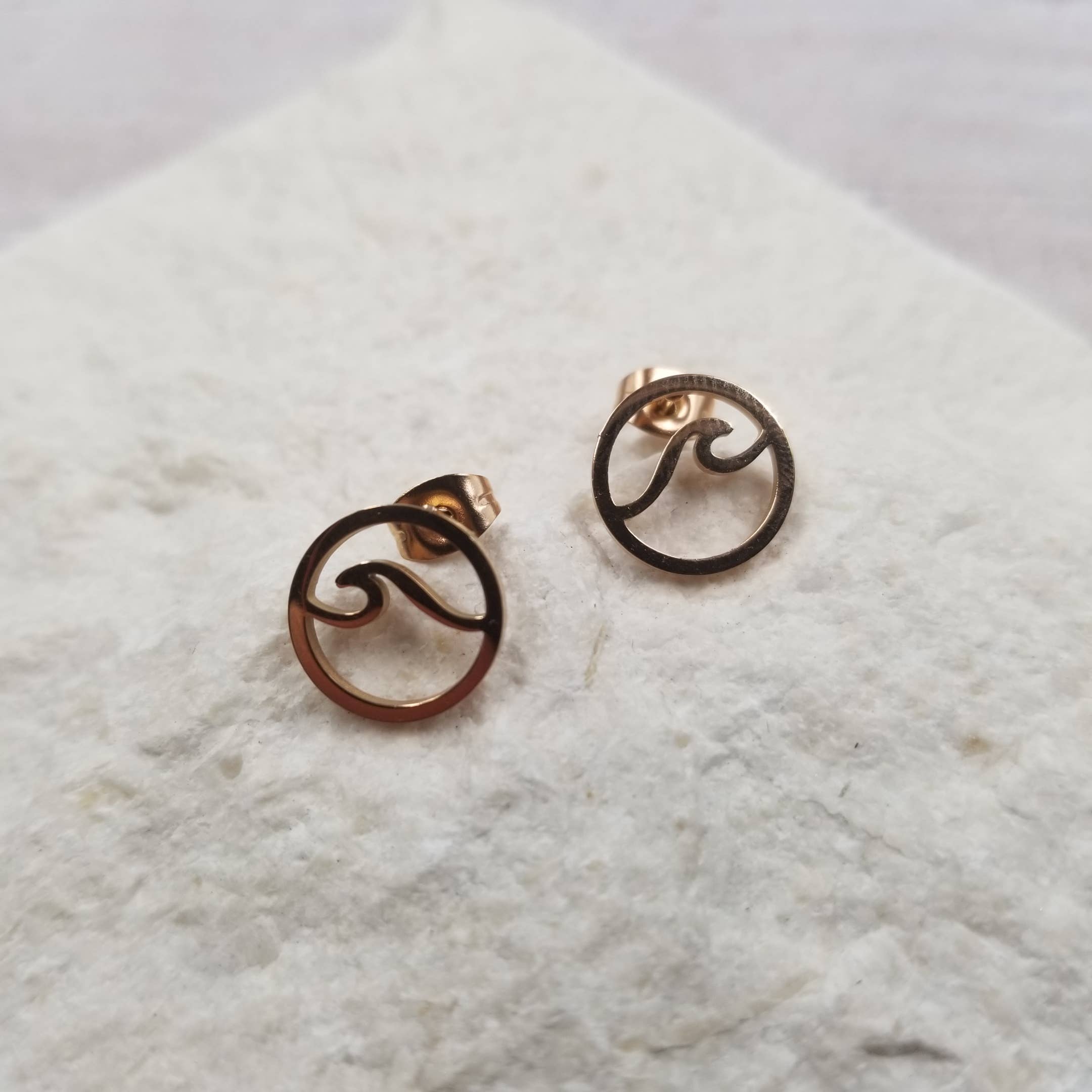 Circle Wave Stud Size: 0.47 " Weight :0.02 lb . Material: stainless steel Color: Gold ,Silver .Rose gold . Function: Jewelry&Accessories . Application: Women/Girls . Occassion:Party/Office/Casual . Package Includes: 1Pair/Opp Bag .