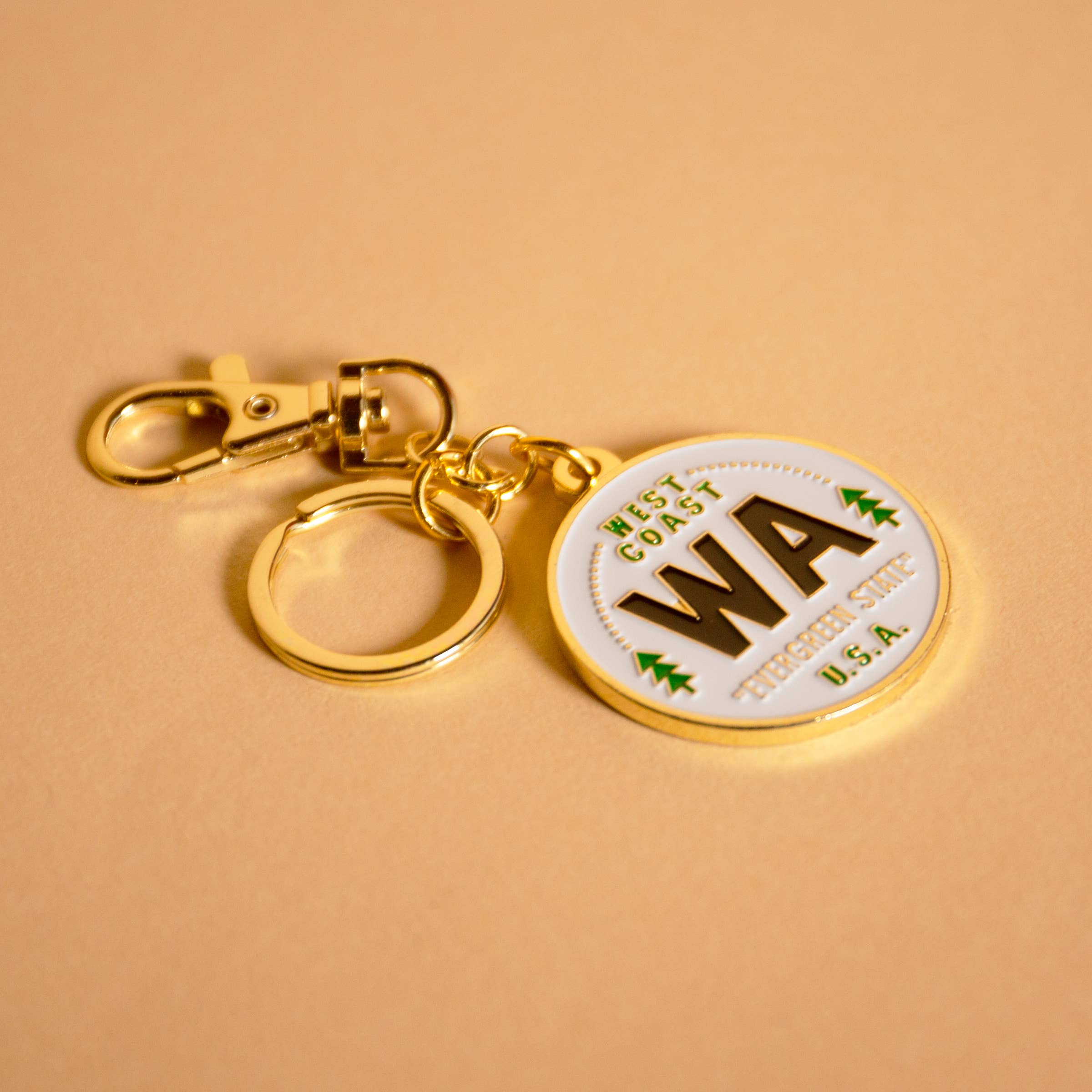 Sturdy Clip & Key Ring on chain. Raised metal edge gives a 3D feel, nickel plated. Designed in Portland, Oregon. West Coast Washington Seattle State Travel Souvenir Gift Rainier Key Clip Charm PNW Pacific Northwest Green