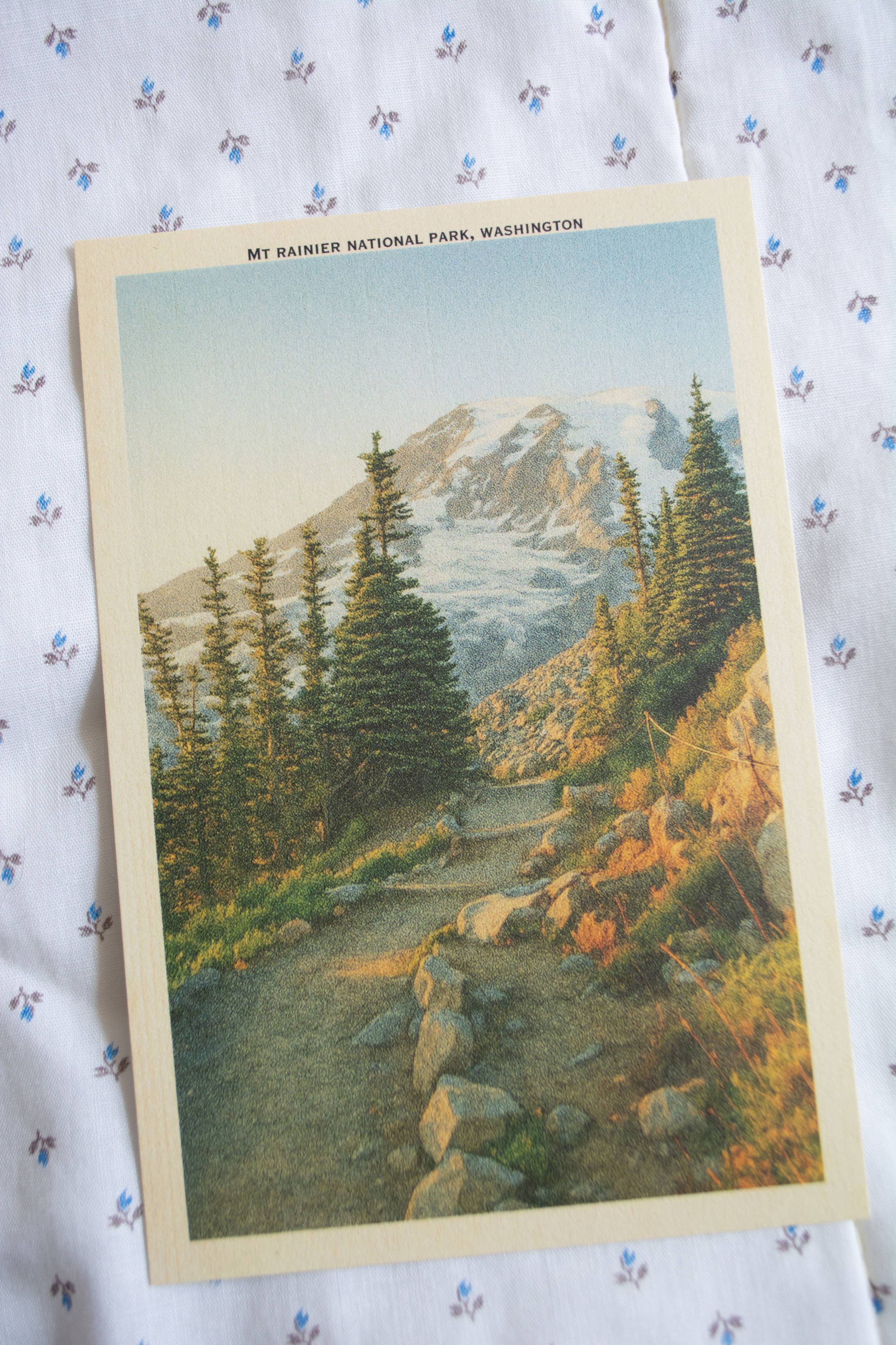 Mt Rainier Vintage Inspired Linen Style 4x6 Postcards : Large Title
