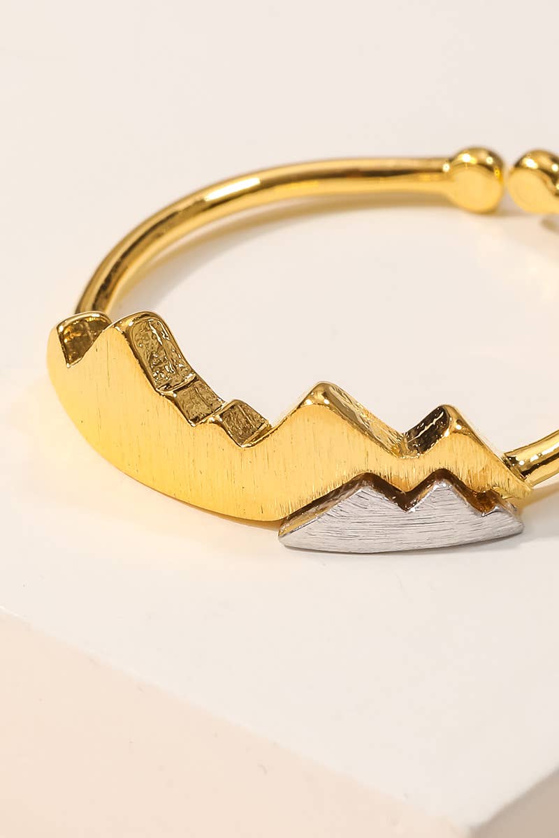 Gold Dipped Two Toned Mountain Adjustable Ring: Gold