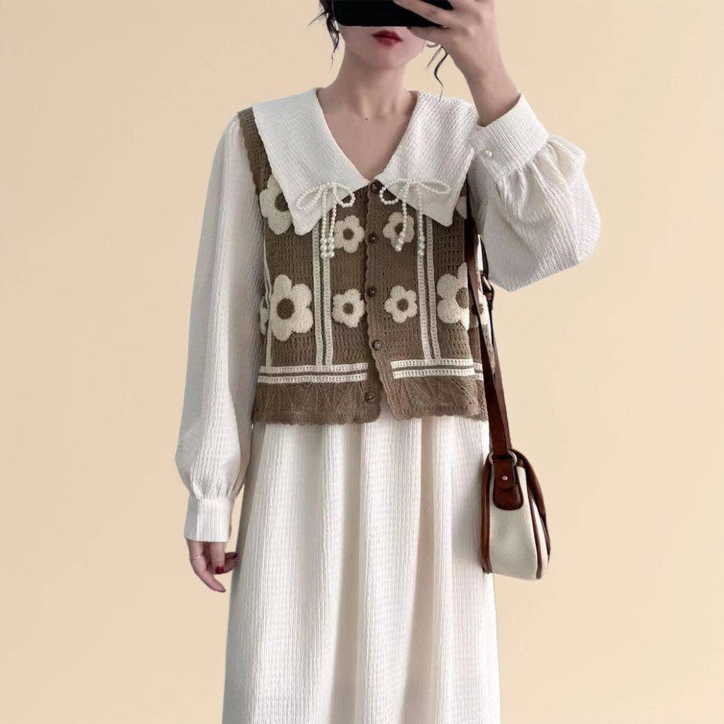 Crosa - Floral Crochet Knit Vest – Airy Summer Cover-Up: Khaki / One Size