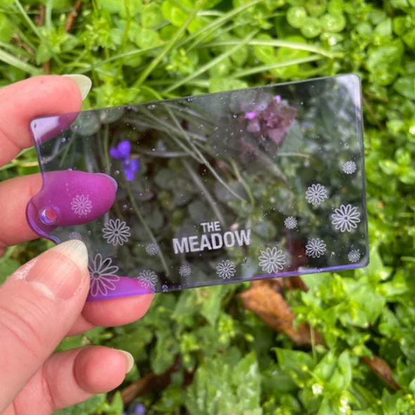Acrylic keychain in transparent Beautiful soft lavender acrylic with little meadow flowers