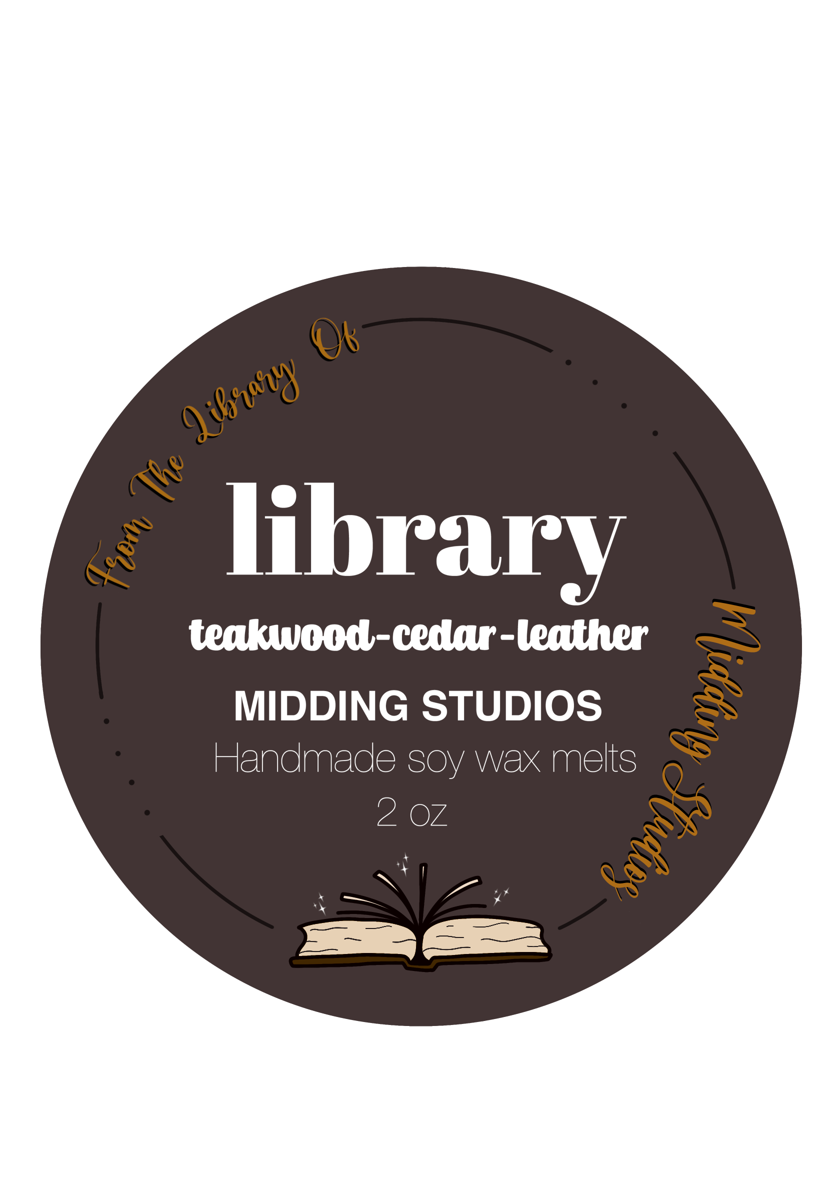 Library 📚 | Original Collection Notes of: teakwood, cedar, leather, sandalwood and dark musk This wax melt bar smells like a fresh book that's ready to be cracked open. Giving very much history library atmosphere. This bar has a iridescent shift colored glitter. All scents are inspired, not replicas. ABOUT MIDDING STUDIOS All wax melts are hand poured with 100% soy wax and clean fragrance oils. All products are made and shipped from Austin, TX. Wax melts may appear different than listing due to the natural tendencies of soy wax. Every package is quality checked before shipment. Break off as much or as little wax as you need for your warmer.