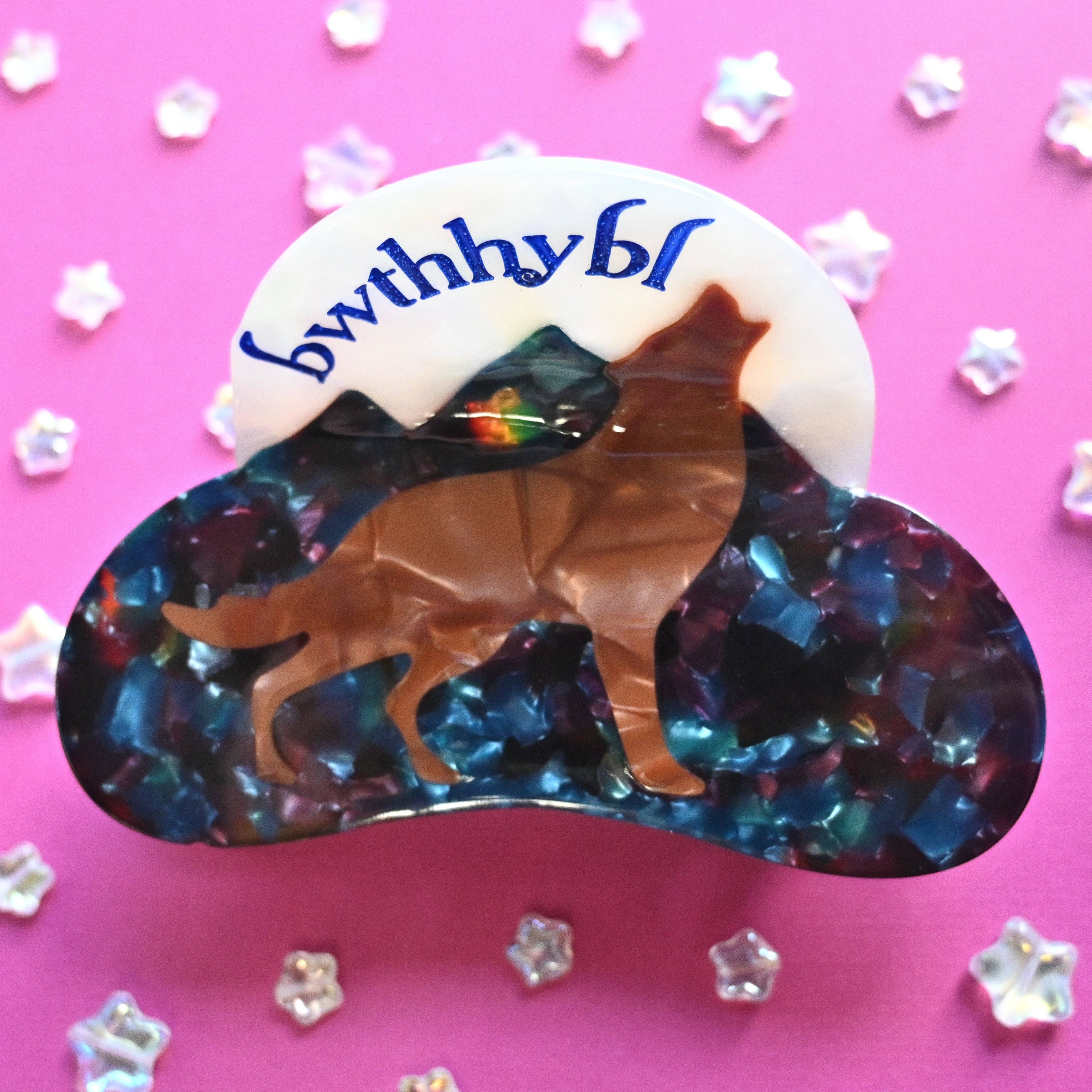 Cellulose acetate hair claw, inspired by Jacobs infamous "Bella where the hell have you been loca" line. 2.25” x 4.25” x 1”