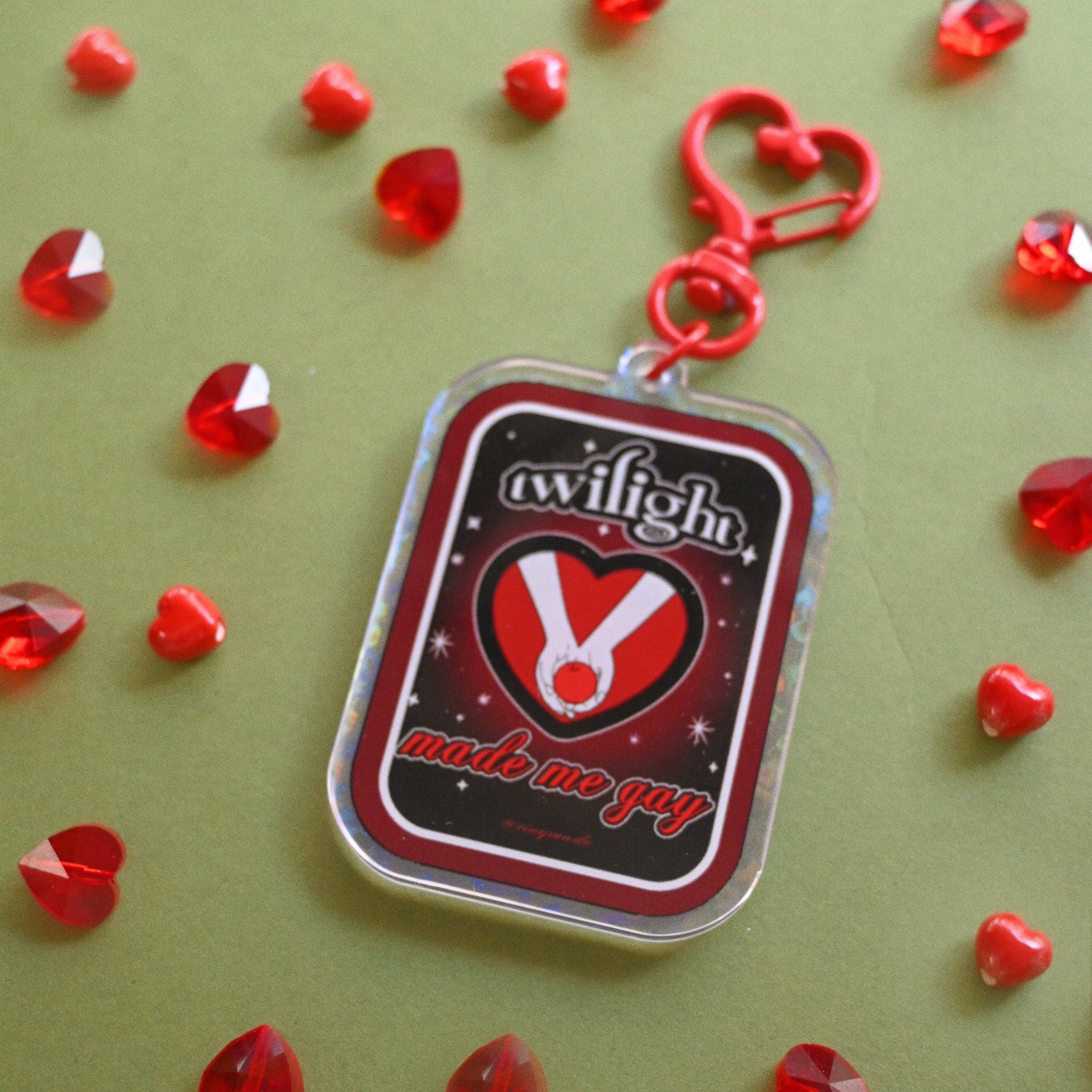 For Twilight fans ! Says "Twilight made me gay" - sparkly holographic on the backside