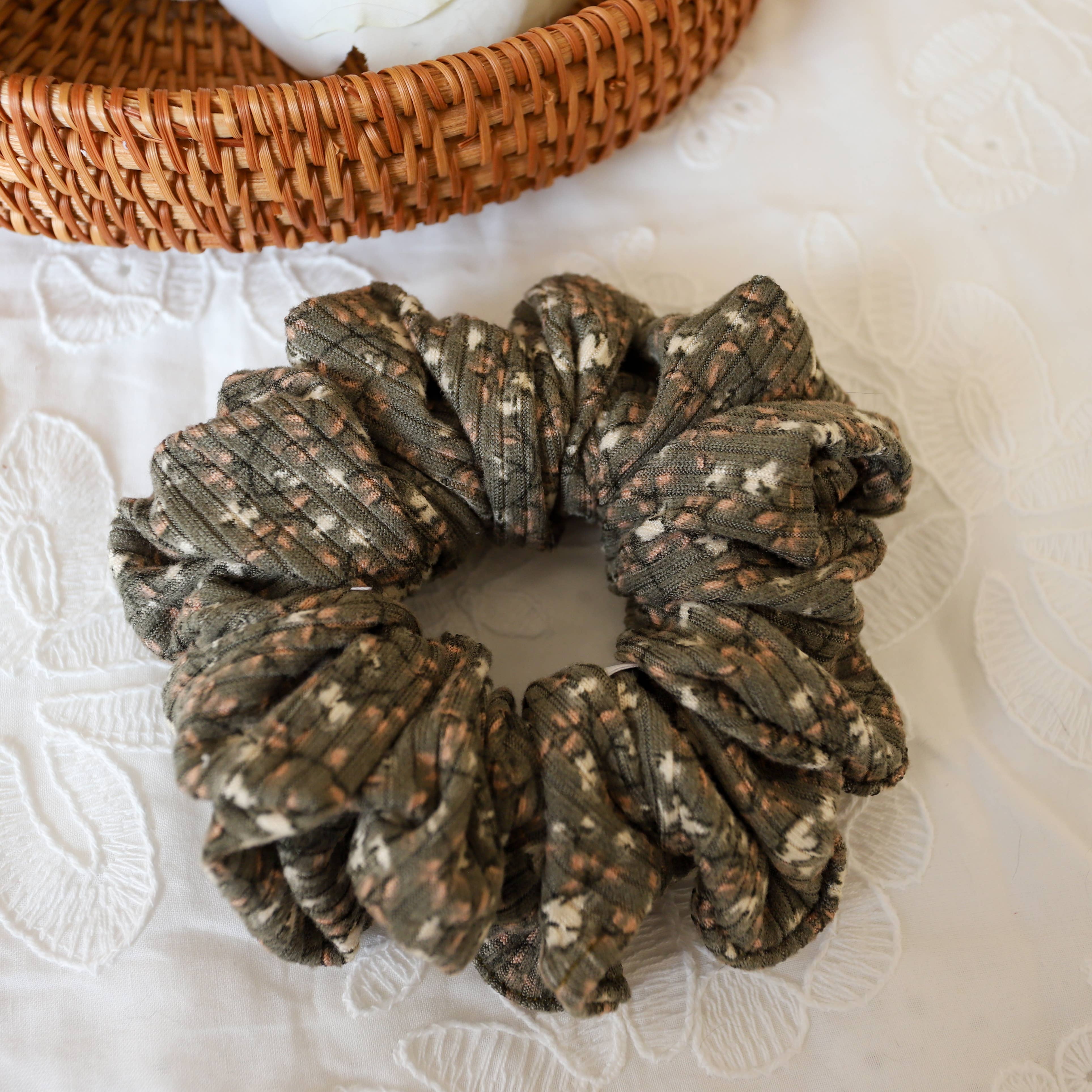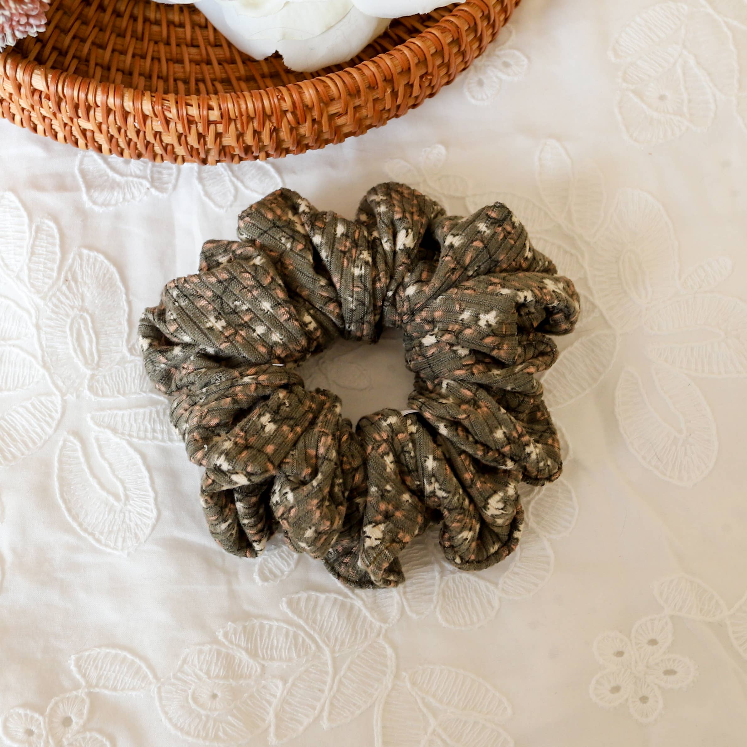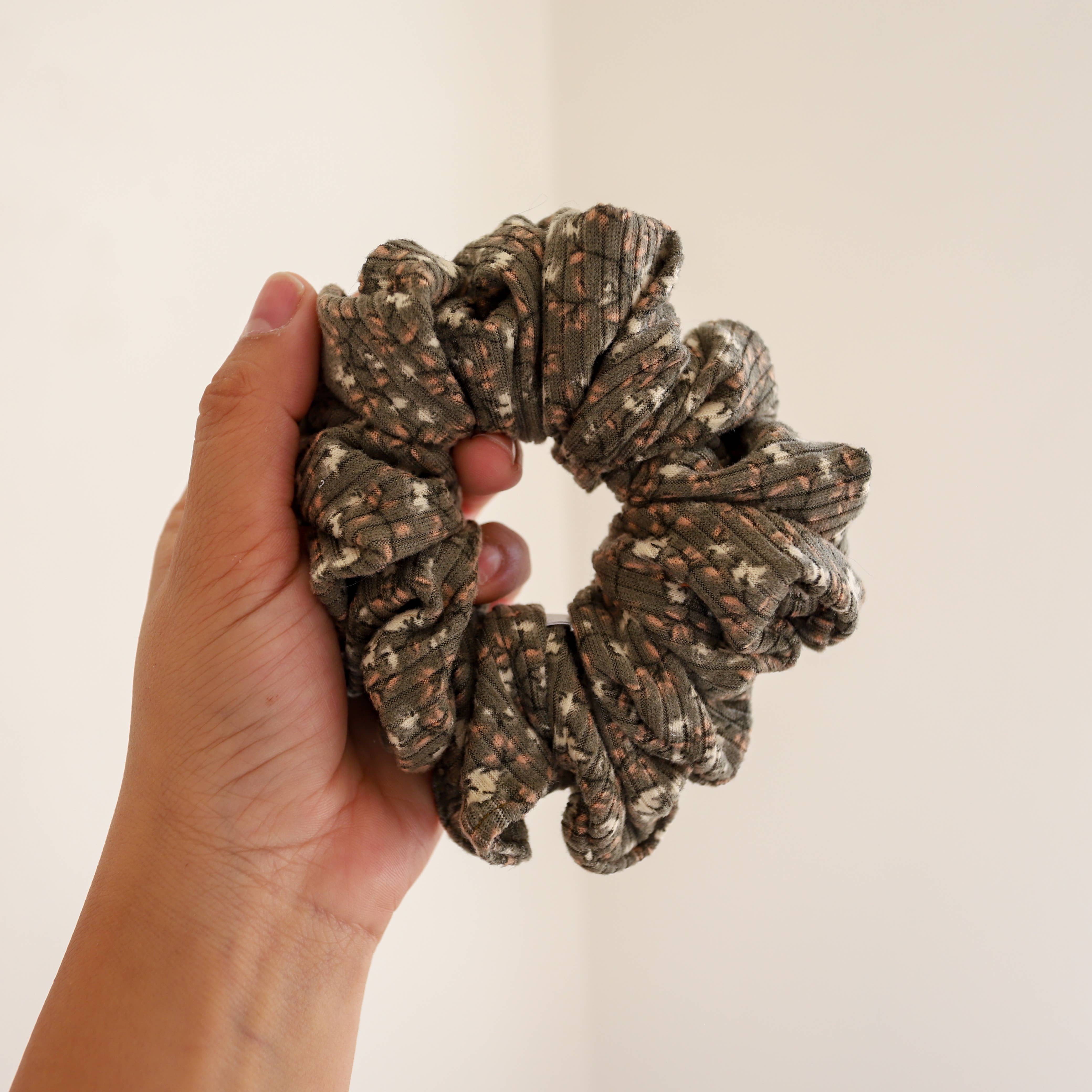 Stretch Scrunchie Collection We use 1/2" elastic in our classic Stretchy Scrunchies, making them perfect for any hair type. Thick hair approved! Check out the entire Stretch Scrunchie Collection in our shop! Color Description: • Olive Green Floral - Olive and White Content: • 100% Cotton • Handmade in Los Angeles Size: • Approximately 4" in diameter • Wraps approximately 2x around hair • Elastic approximately 7" - 8” Perfect For: • Thick Short, Long, or Coarse Hair • Fine Short, Long, or Coarse Hair • Straight, Wavy, or Coarse Hair