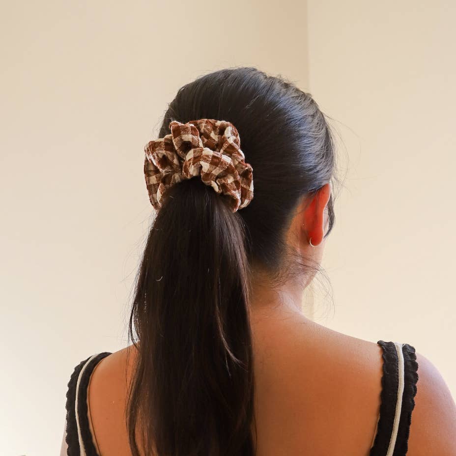 Teddy Plaid Scrunchie - Chocolate Brown Color
