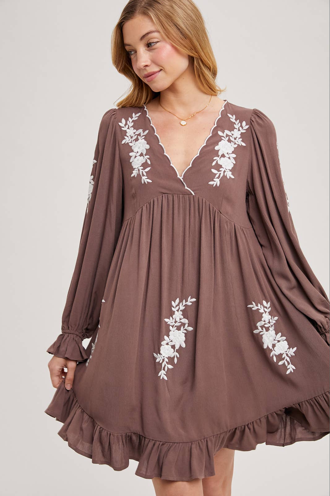 EMBROIDERED V-NECK RUFFLED DRESS: COCO
