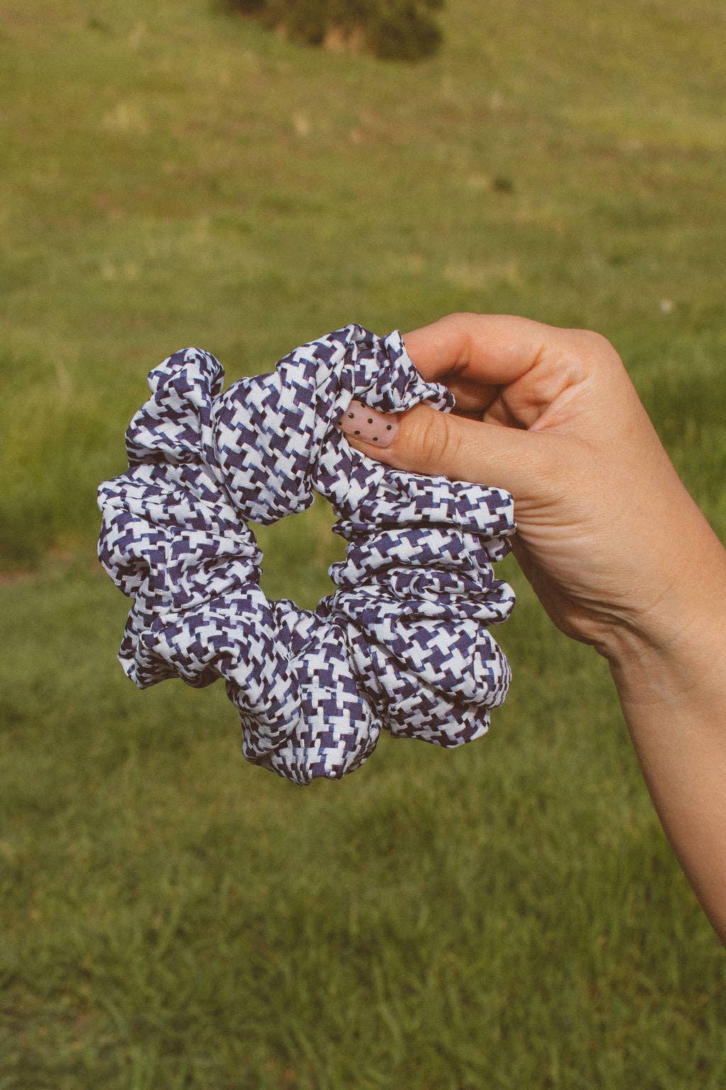 Houndstooth in Navy Jumbo Scrunchie