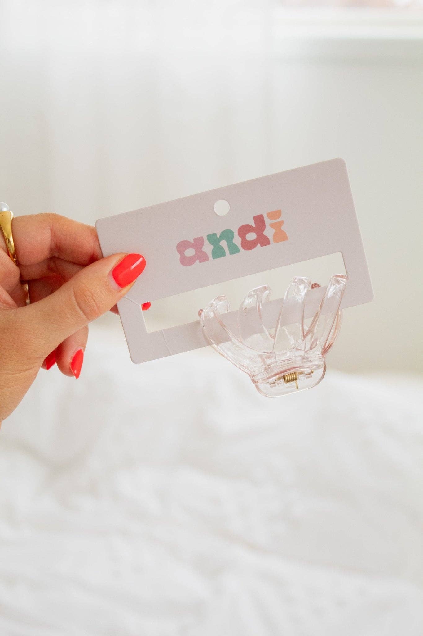 These claw clips are a must for your accessory bag! Every Andi claw clip is specifically made to hold your hair as cute as humanly possible, all day long. This claw clip comes in the cutest translucent pink. It is a unique but adorable small "octopus" shape. Pair this with your favorite sweats, date night dress, or work fit!