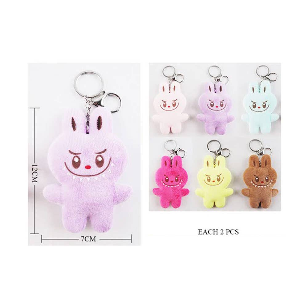 Size : 3" X 4.2", 6" L Add a touch of fun to your accessories with this plush bunny keychain featuring a mischievous face and soft, squeezable texture. Perfect for bags, keys, or gifts, it’s a charming and playful accessory that brings a bit of personality wherever you go. Price is for one keychain.
