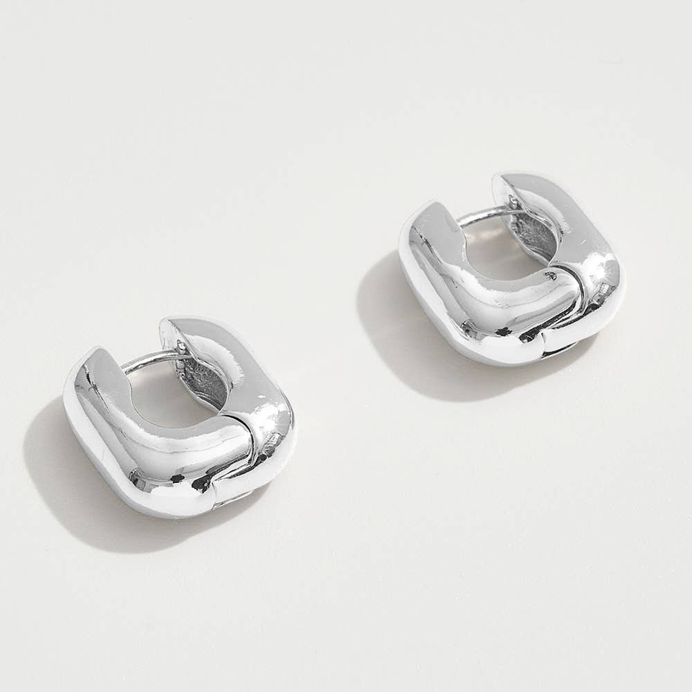Huggie Back These chunky square hoop earrings feature a bold geometric silhouette with a smooth, polished finish for a modern twist on classic hoops. Their sculptural shape adds edge and elegance, making them a versatile statement piece for both casual and elevated looks.