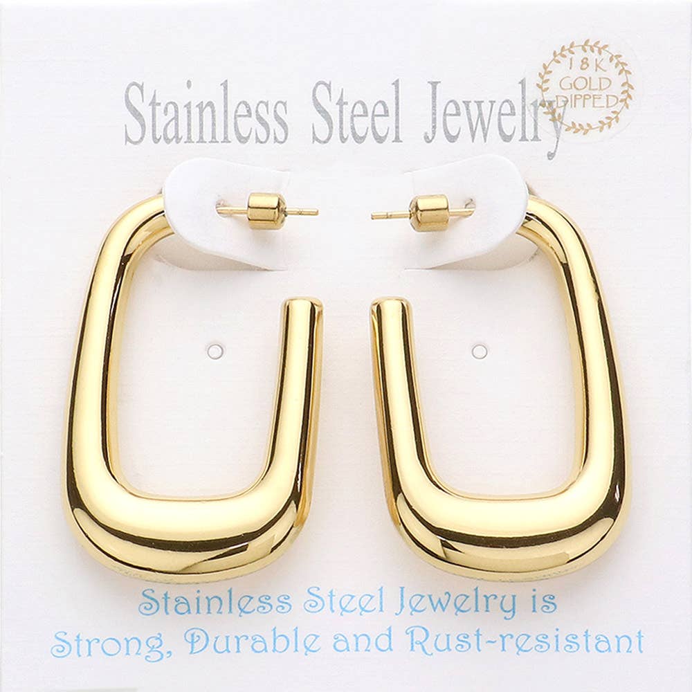 18K Gold Dipped Stainless Steel Rectangle Hoop Earrings