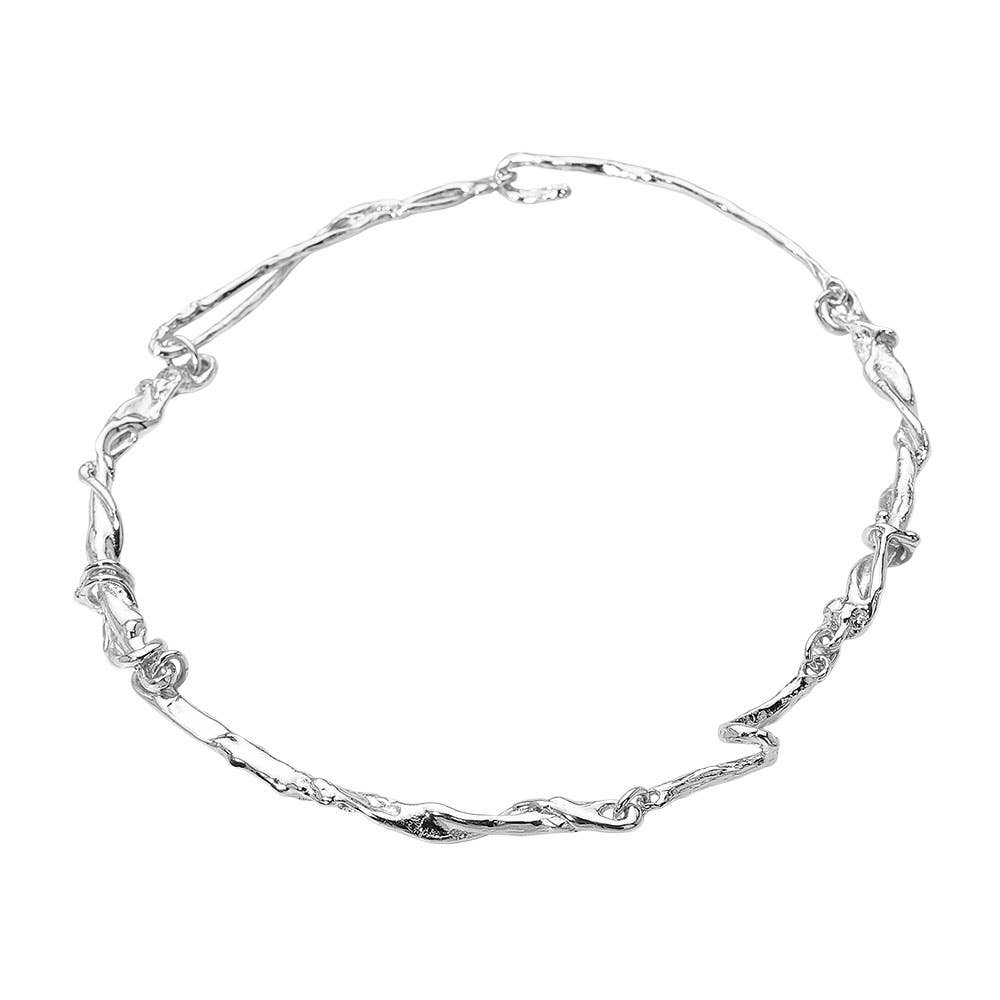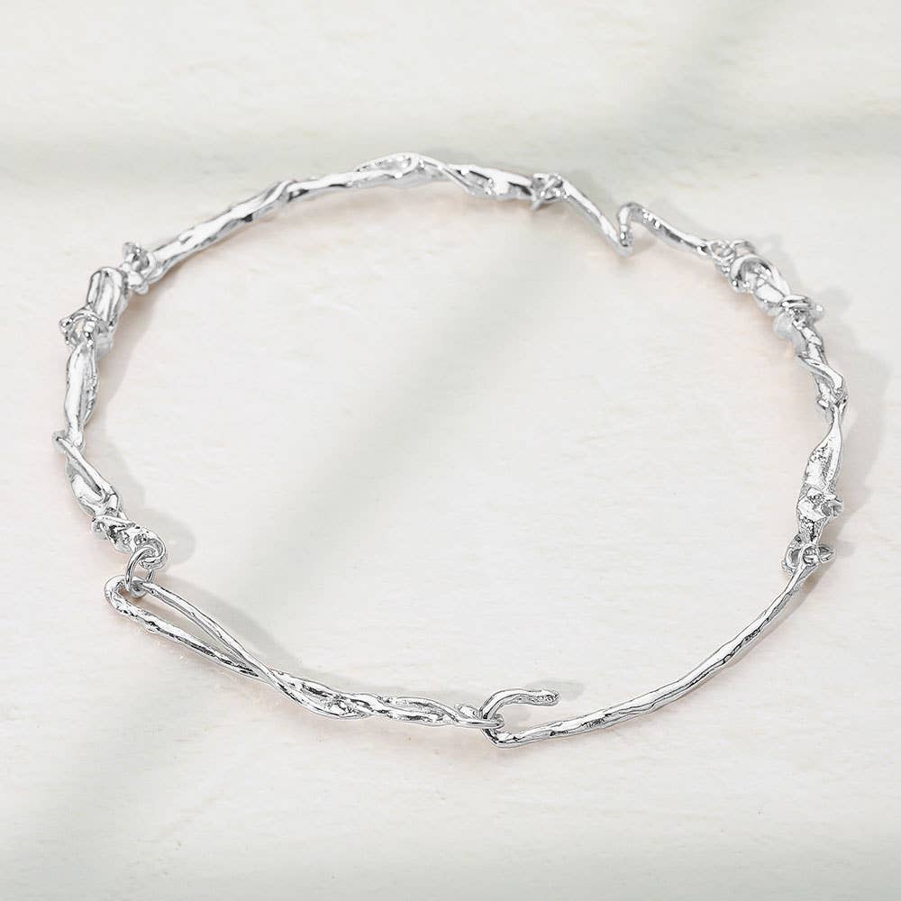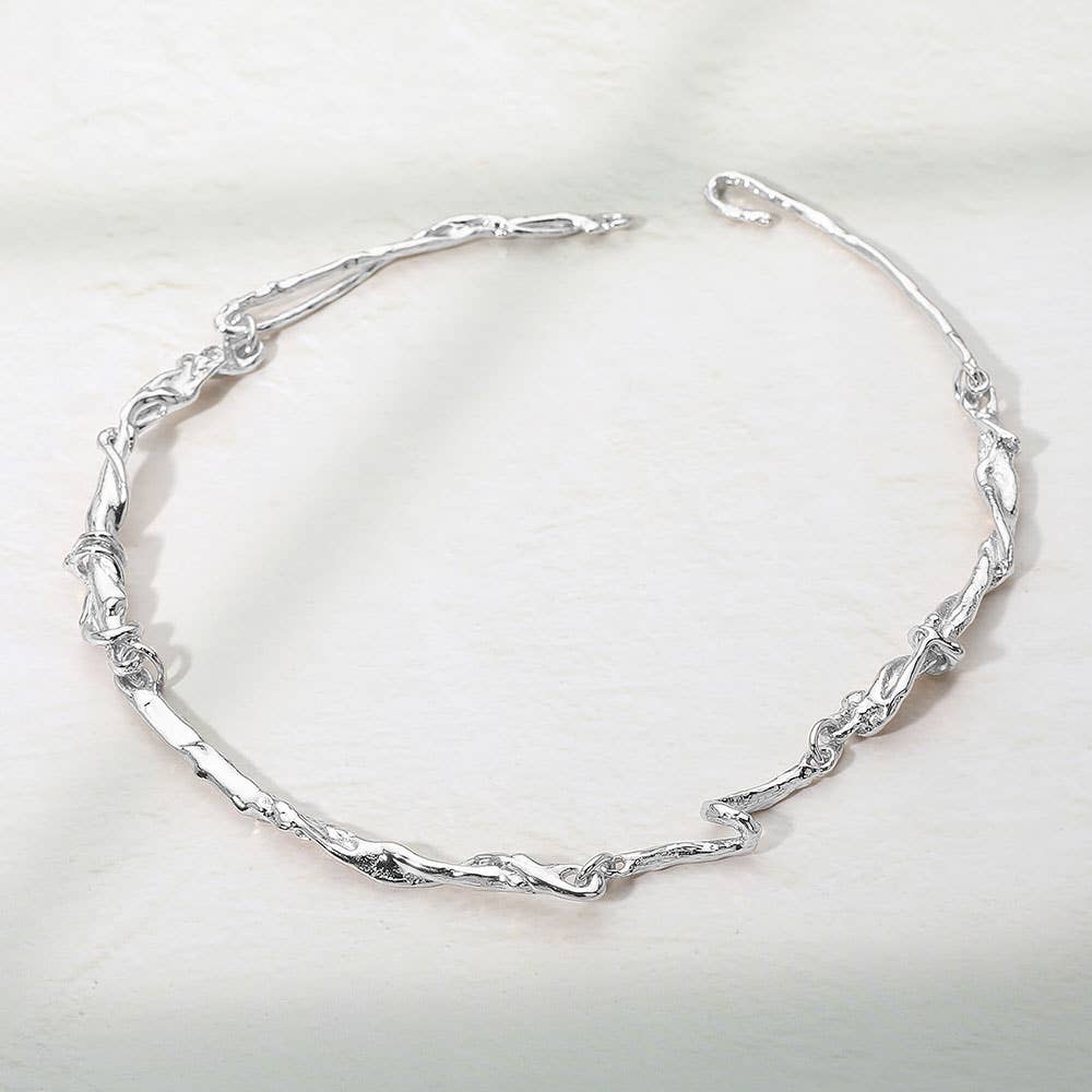 Elevate your jewelry collection with this organic twisted chain necklace featuring a unique textured design that mimics natural branches. Lightweight and versatile, it adds an artistic edge to both casual and elegant looks. A statement piece perfect for layering or wearing solo with modern outfits.