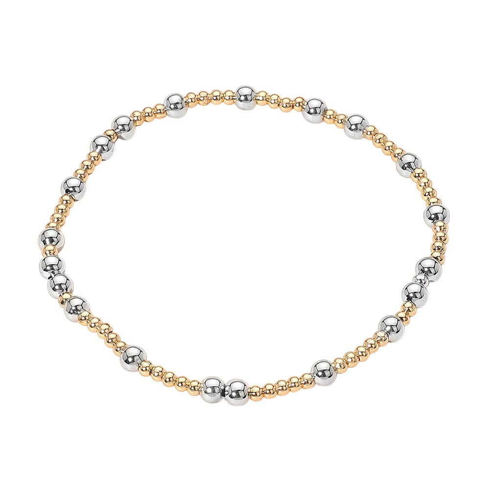 Stretchable Sleek two-tone stretch bracelet with alternating metallic beads. Lightweight and comfortable, perfect for layering or wearing solo to elevate your everyday look.