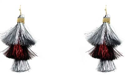 Silver and Maroon Shimmer Tassel Gameday 2" Earring