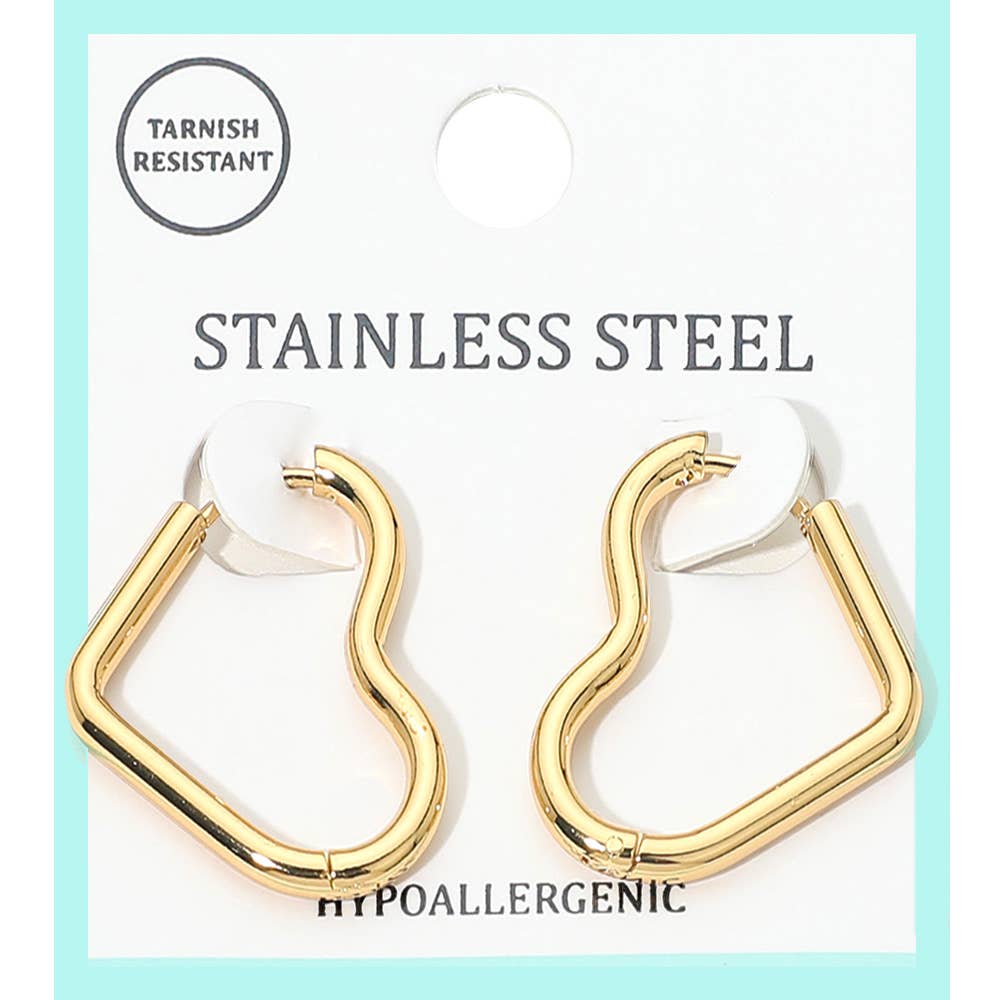 Stainless Steel Heart Huggie Hoop Earrings: Gold