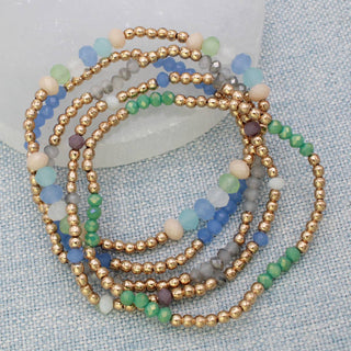 Set of 4 Maroon and White Glass Bead and Gold Stretch Bracelets, Great for Gameday!