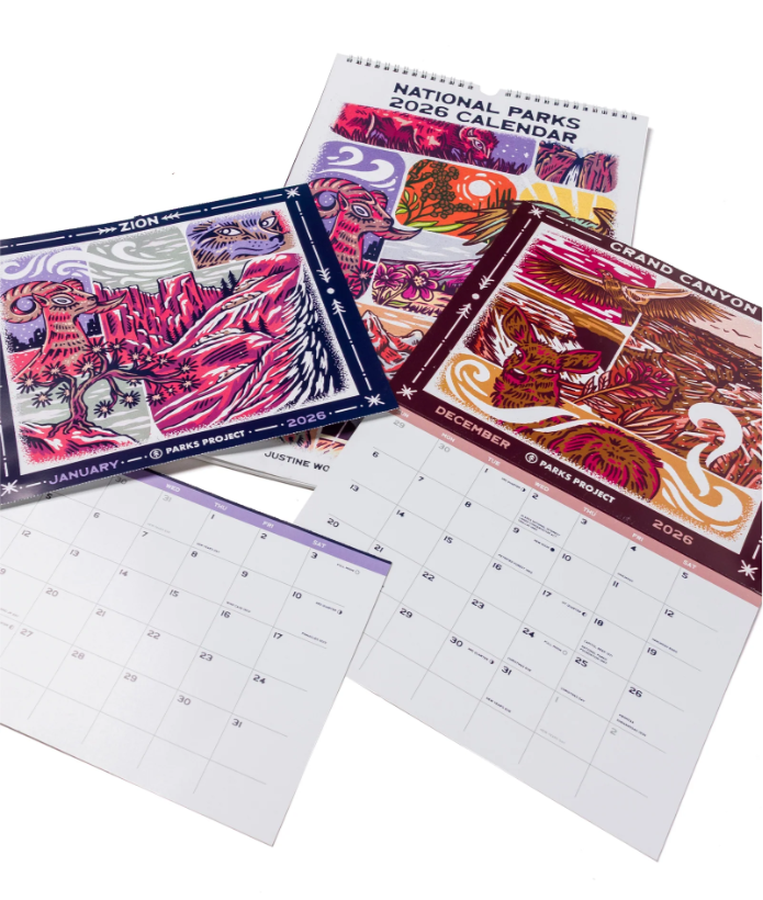 Plan your year with adventure in mind—this 2026 calendar features hand-drawn art inspired by America’s national parks, bringing the beauty of the wild into your everyday while supporting park conservation.
