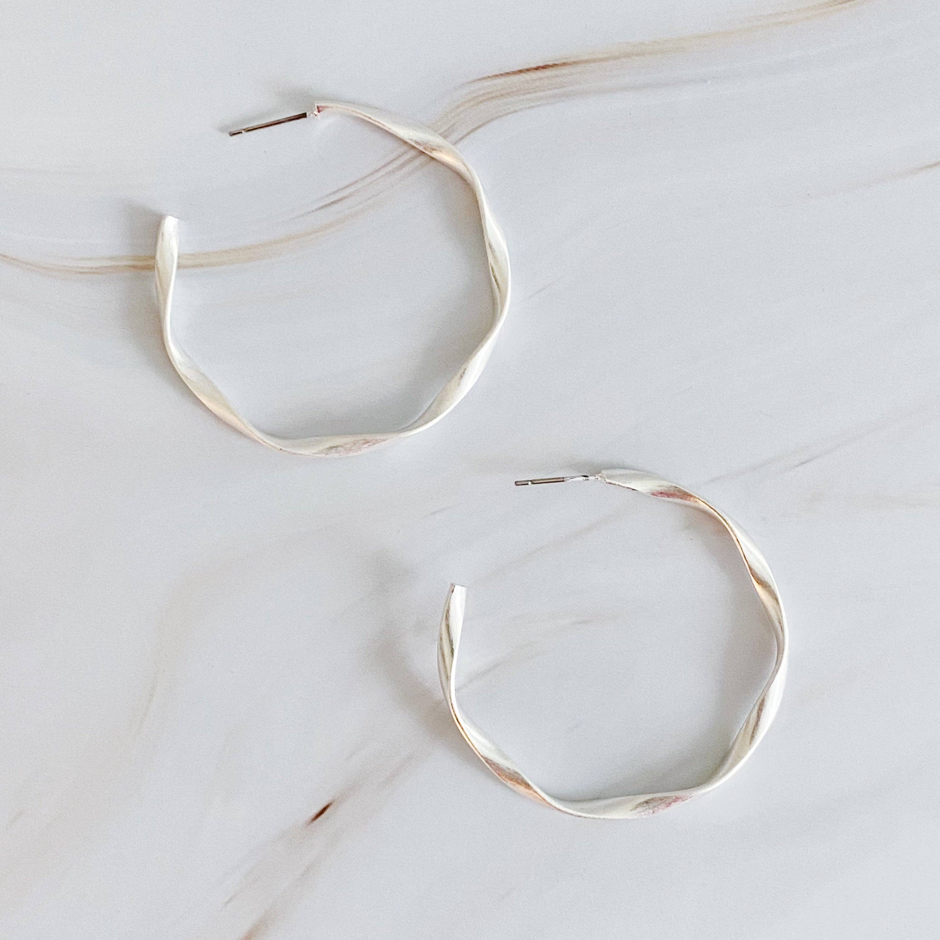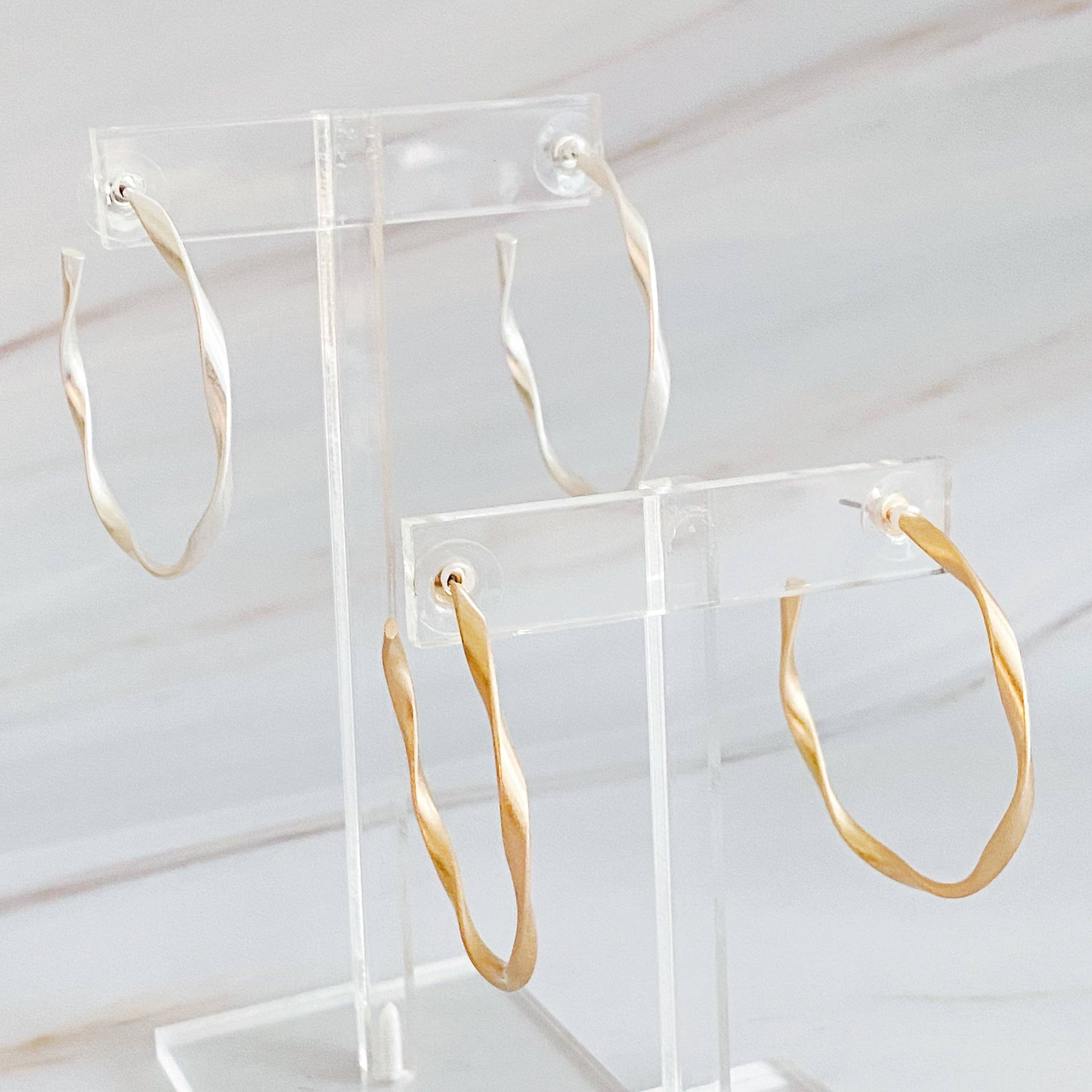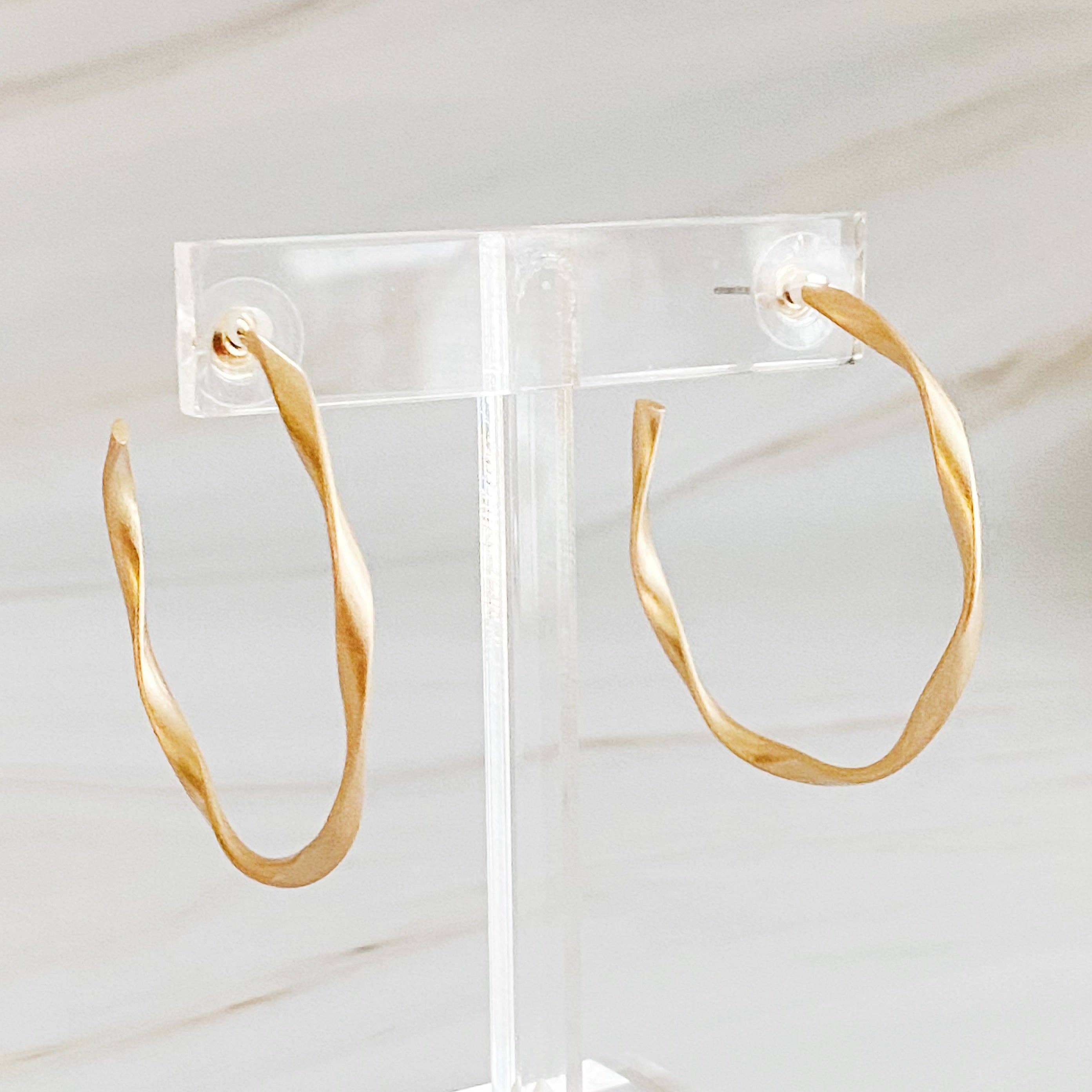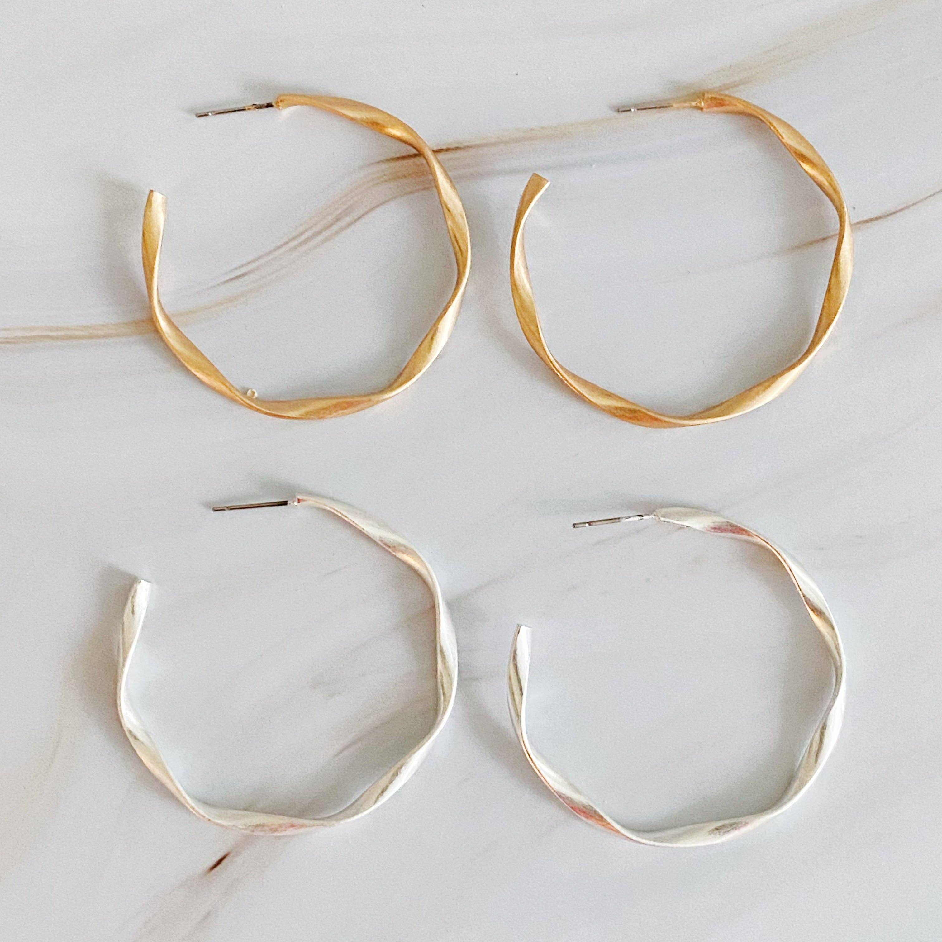 Elevate your everyday look with these Gentle Wave Sleek Hoop Earrings. Crafted with a chic and unique softly twisted hoop design, these stylish earrings feature a matte finish texture and a sleek, waved body. Lightweight and comfortable to wear, they make an ideal addition for your jewelry collection.