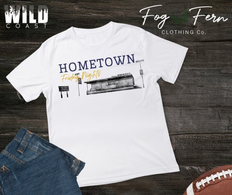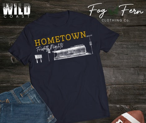Fog & Fern design collaboration with Wild Coast Designs to bring you a hand drawn replica one of a kind design of our new spartan stadium. This is a pre-order listing. Shirts will be complete and ready for pick up by 9/13/23 in time for homecoming weekend.
